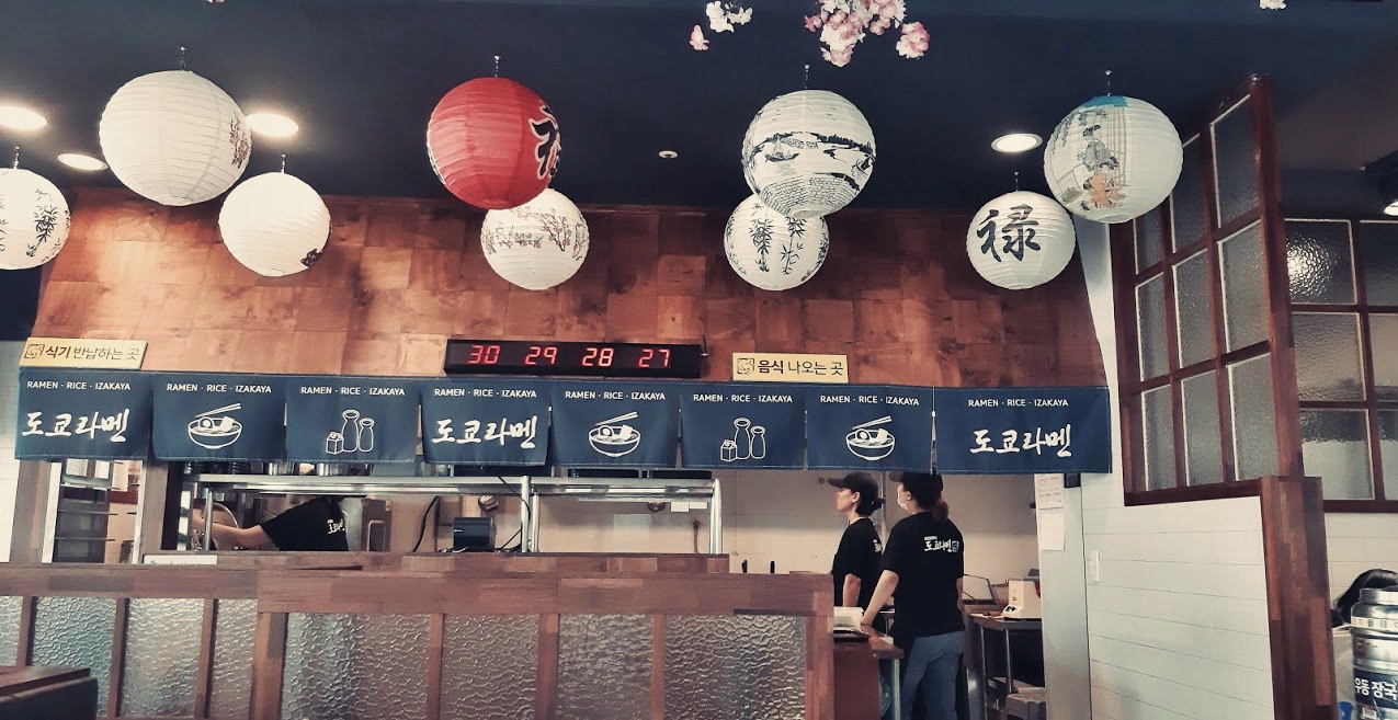 마침 아들이 다니는 학원 근처에 일본라면집이 있어 일요일 점심을 먹었다.