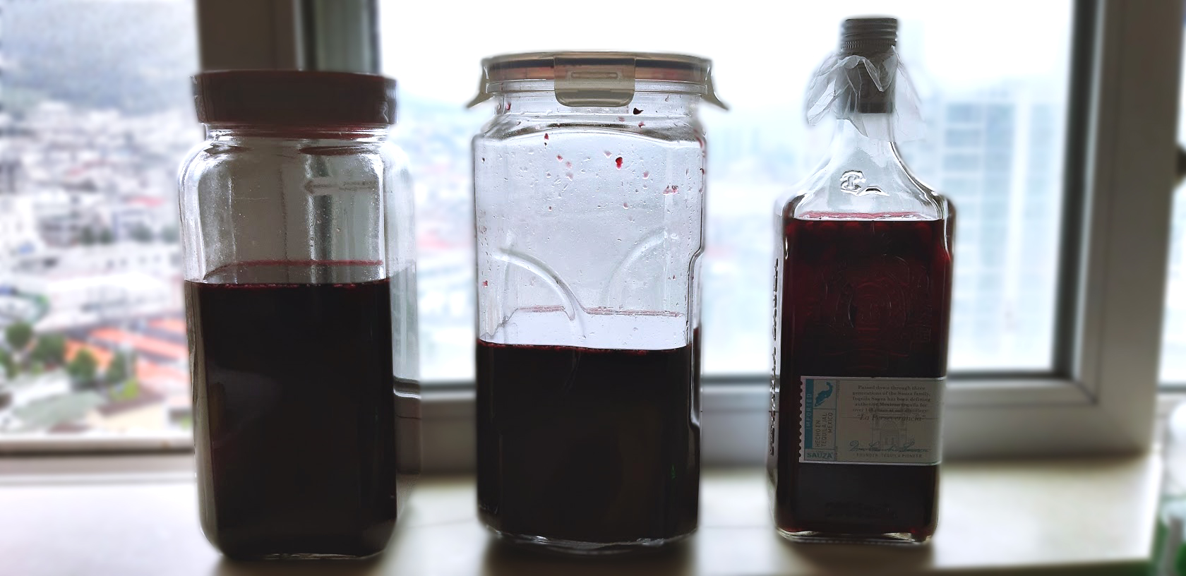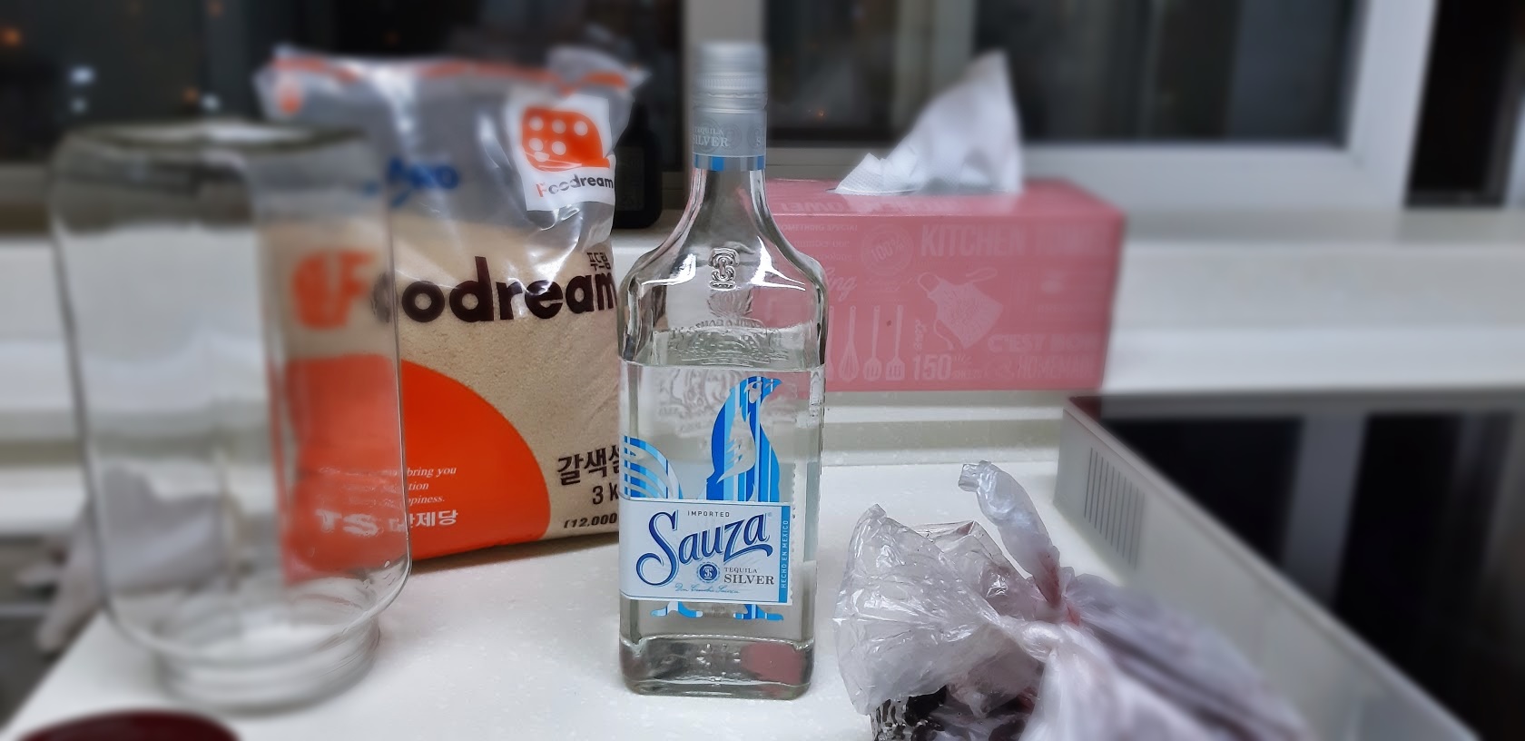 약700ml의 데킬라술에 복분자 150~200g을 투입한 후, 나머지 공간에는 설탕을 넣었다. 복분자 한알 한알을 집어넣자마자자 복분자색깔이 퍼져나가는게 마치 데킬라가 복분자의 달콤함을 뽑아내는 것처럼 보였다. 이로인해 데킬라 특유의 냄새가 중화되길 기대한다. 틈틈이 두껑을 열어 냄새를 맡아보는데 '아...아직 데킬라구나'하며 닫는다.