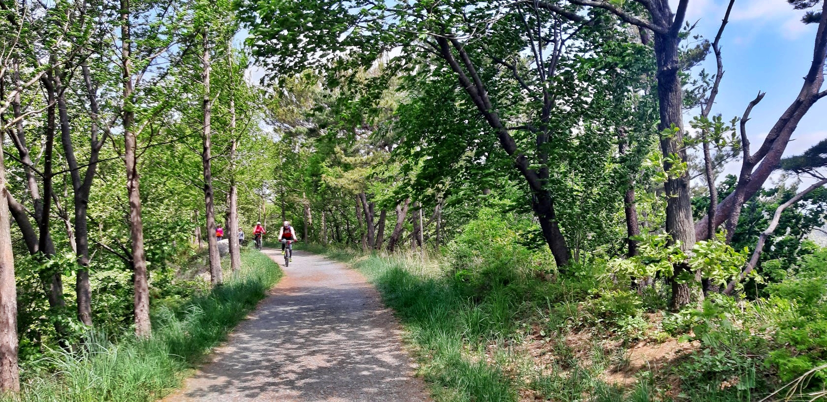 드물지 않게 자동거동호회 회원들의 모습도 옆을 지나간다.