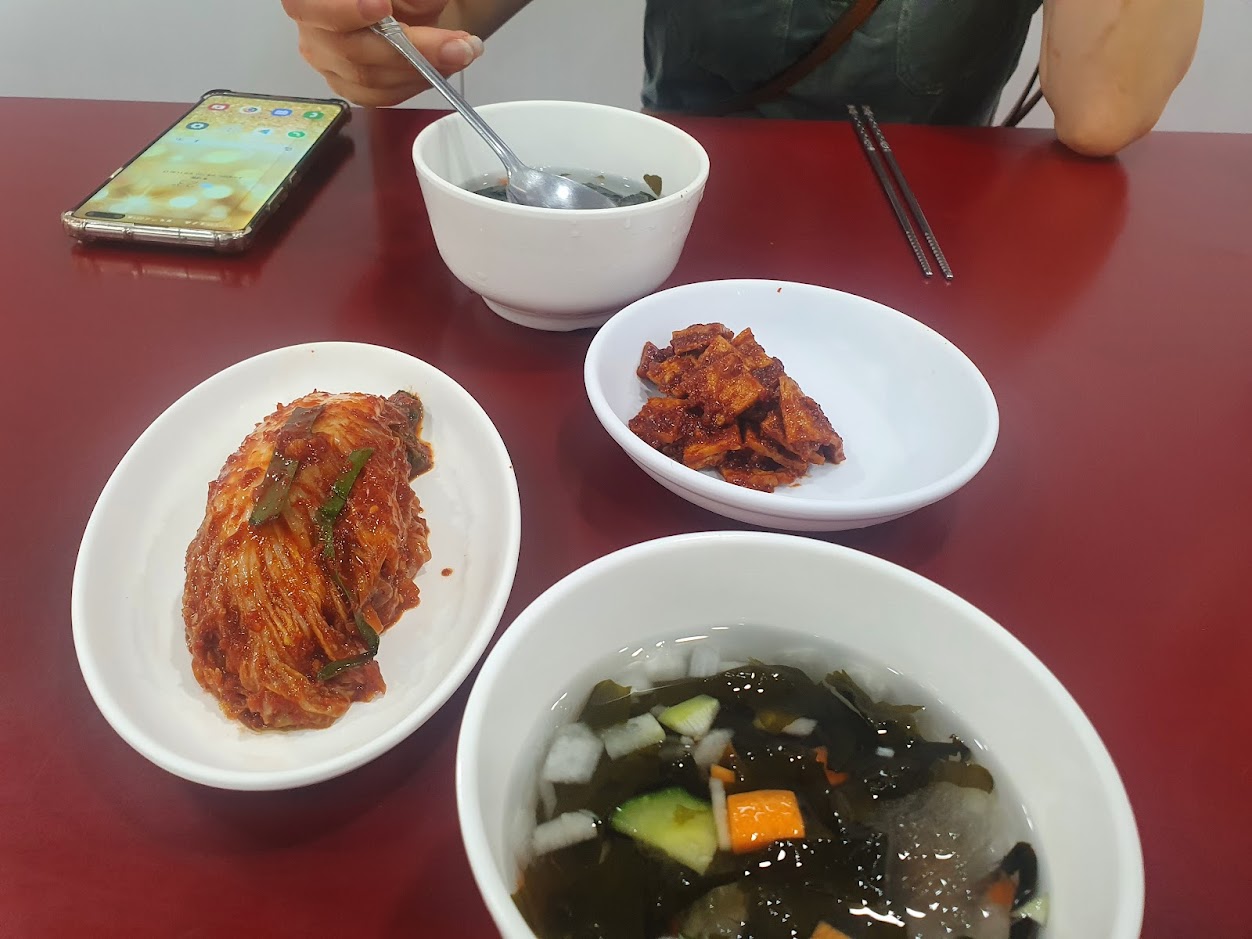 조미료 맛이 강하게 풍기는 김치, 어묵무침, 냉미역국 !!!!!