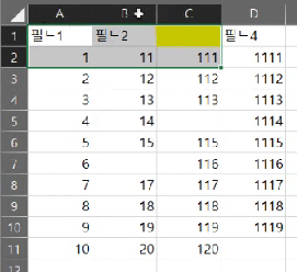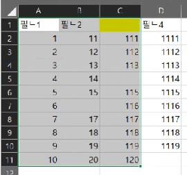 제목행을 제외한 데이타 테이블 전체 셀 범위를 선택하기!!!