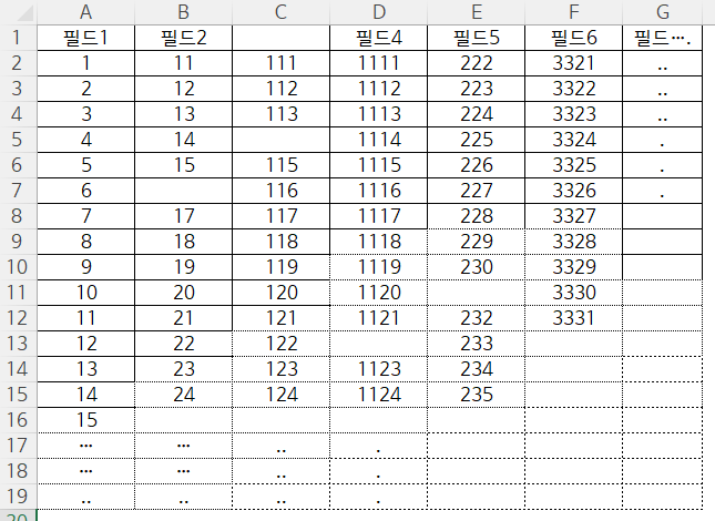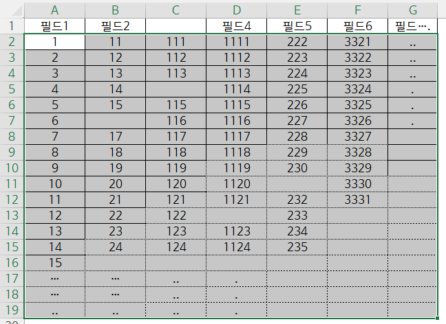 특정열의 마지막 셀 (중간 빈 셀O) 번호 찾기