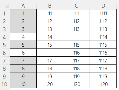 목적 : Union을 활용하여 비연속적으로 떨어진 셀 범위 선택하기(합집합)