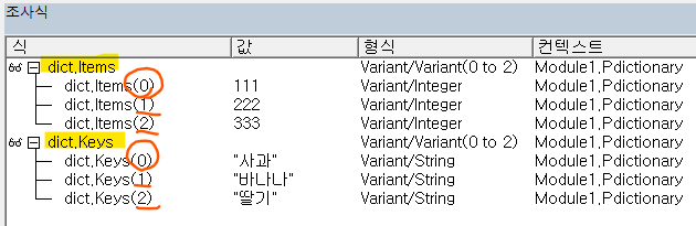그래서 Key 및 Item값을 워크시트에 한꺼번 뿌려줄 필요가 있다.