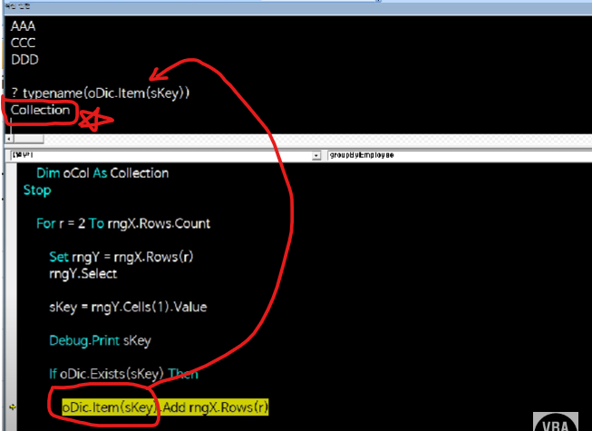'oDic.Item(sKey) 은 Collection 임. 그림1참조