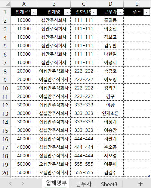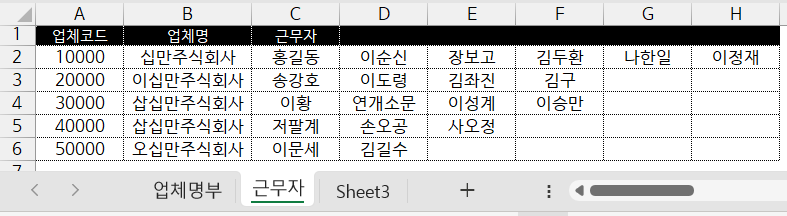 [엑셀 실무][range.find를 이용한](여러 업체가 있는 )업체명부에서 업체별로 (열 단위로)근무자 뽑아내기